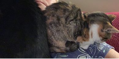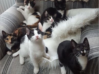If all goes well, the scaredy feral kittens become loving tame cuddly cats and sometimes we get covered in cats all wanting to sit on us. The once scary humans are now just a large cat cushion!