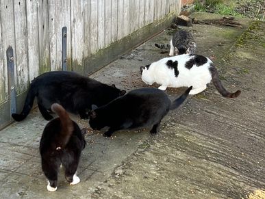 Some cats are adults when we trap them and we know would prove hard to tame so these are neutered, ear tipped and released. Some colonies like this one continue to get supported by us as we provide food for them. In return they provide excellent vermin control in their home territory.